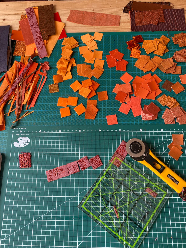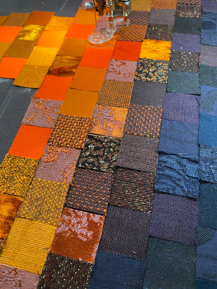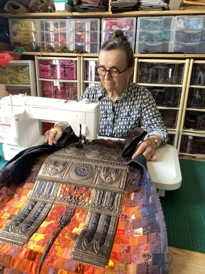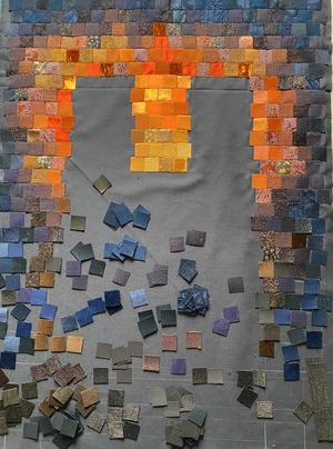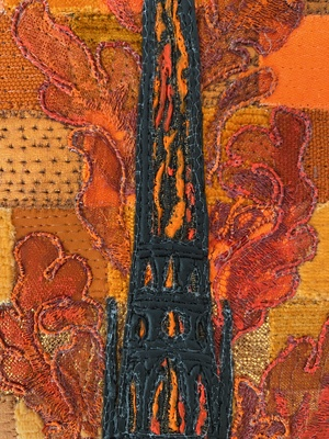 Pendant les quelques jours de l'incendie, je me suis promise d'en faire un tableau si la cathédrale en réchappait. Le projet a duré plusieurs années, par intermittence, sans cesse repris entre d'autres. Il est sorti avec beaucoup de difficulté car j'ai un peu cassé ma machine à coudre dessus!